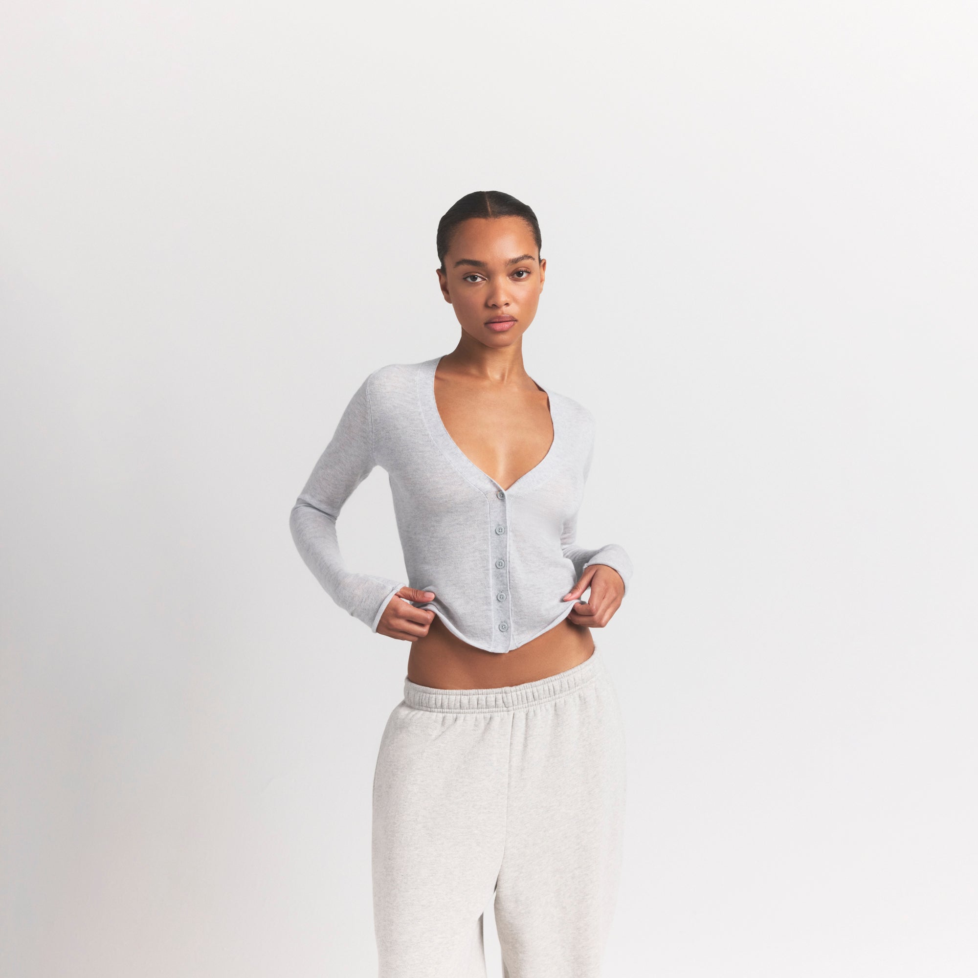 Layered to perfection. Made from lightweight, 100% Grade A Cashmere, this semi-sheer cardigan wraps you in premium, soft comfort. Features a plunge neckline and center front button closure. Fits true to size.