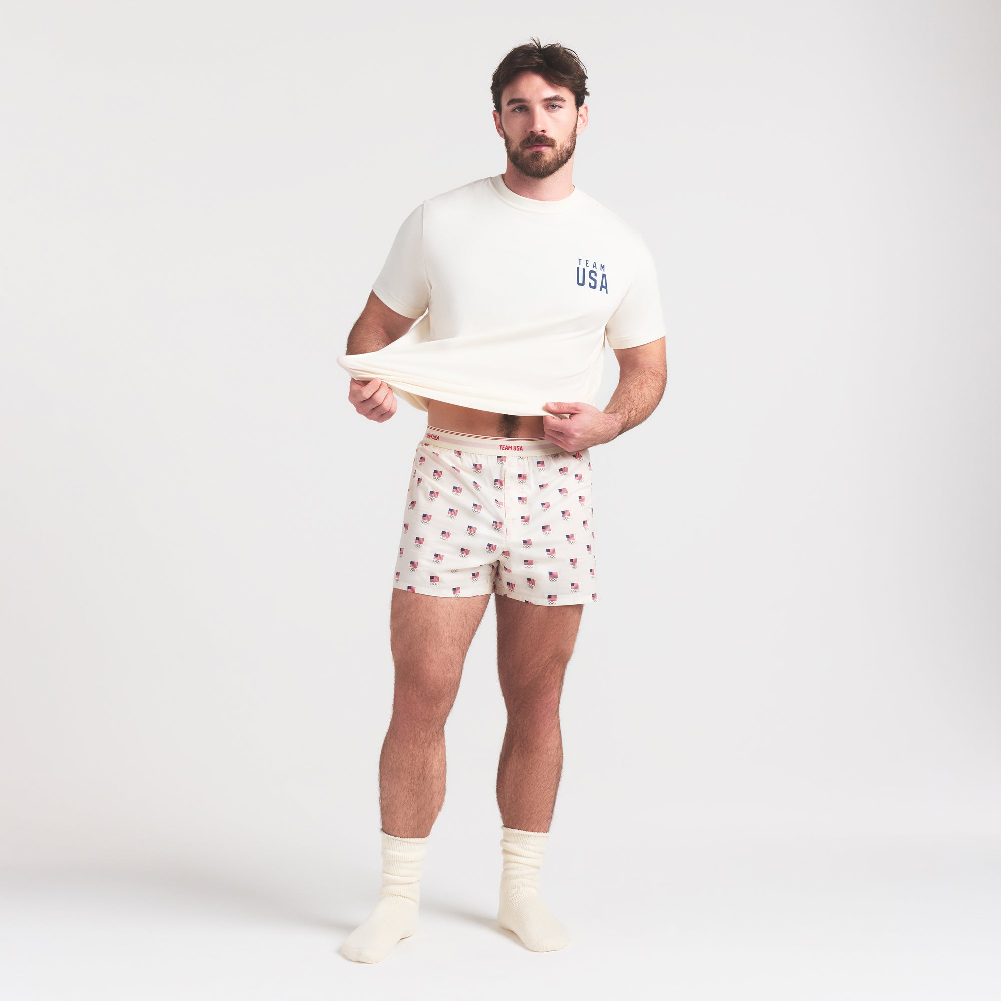 Crisp, cool comfort for the win. Our classic Cotton Poplin boxer, reimagined in a sporty all-over Olympic print and accented by an elastic waistband with team spirit to match. Features official graphics in support of the Team USA athletes participating in the Olympic Winter Games Milano Cortina 2026.