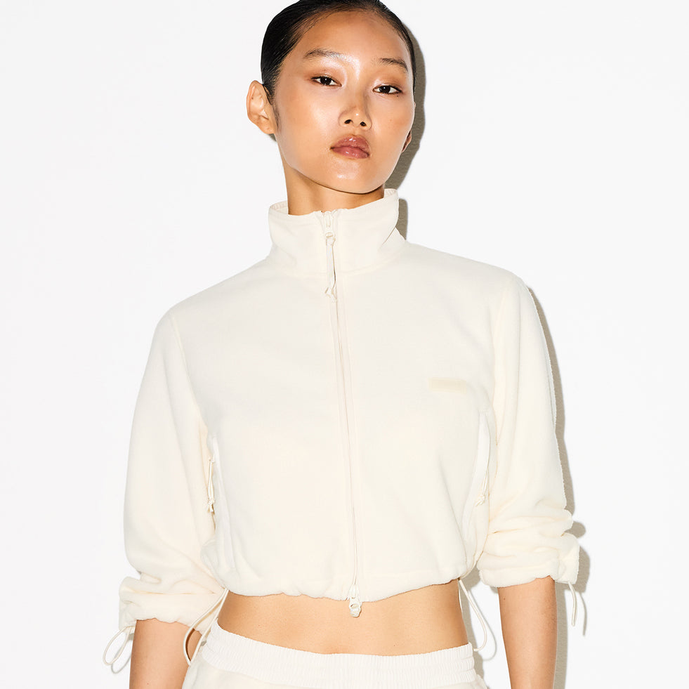 Cropped, cozy, and plush. Featuring our mid-weight polar fleece and contrast detailing, this shrunken zip-up brings softness and sporty edge to your cold-weather uniform. Complete with a sleek mock neck, side zipper pockets, and adjustable bungee cord at the sleeve and hem. Finished with a SKIMS logo on the chest and fits true to size.