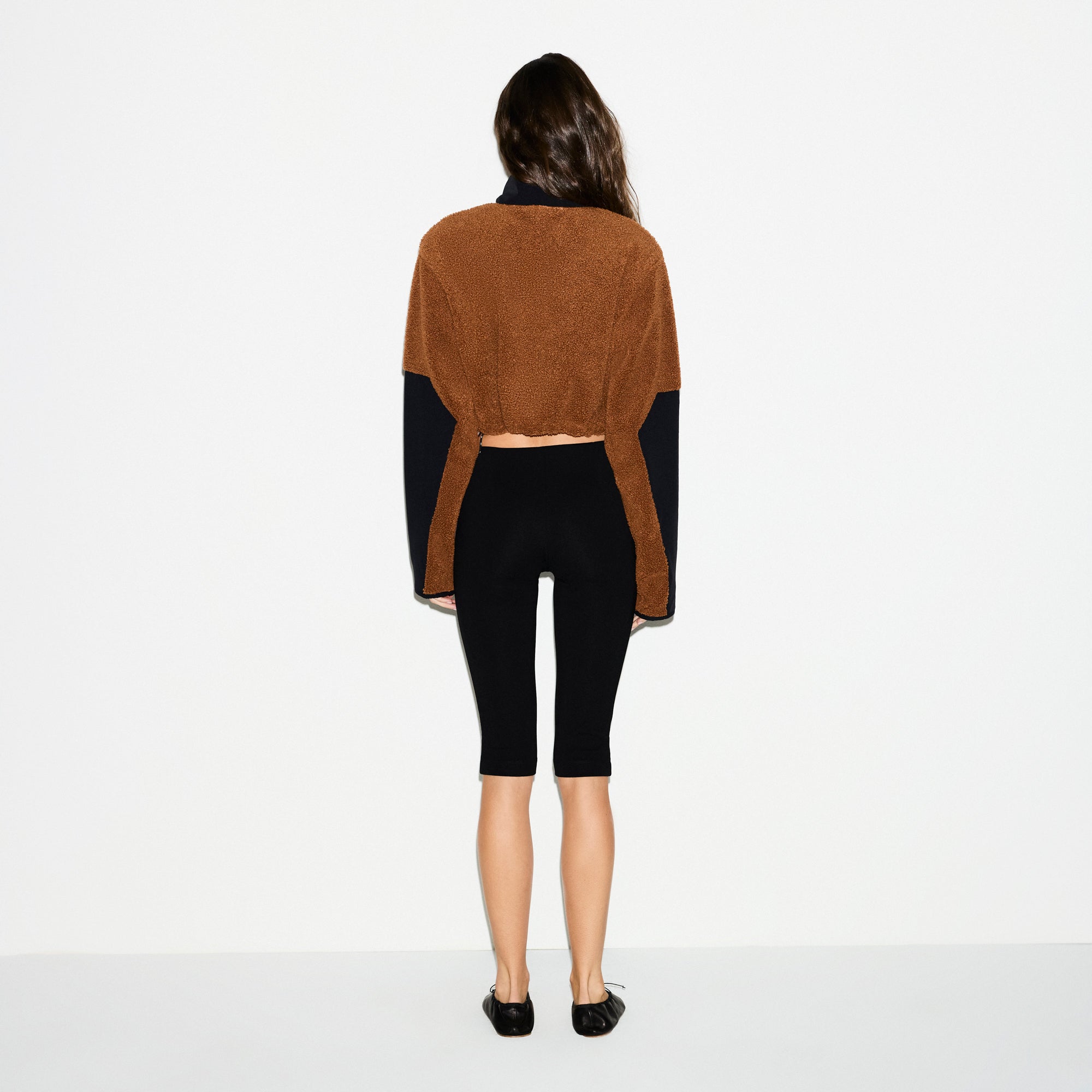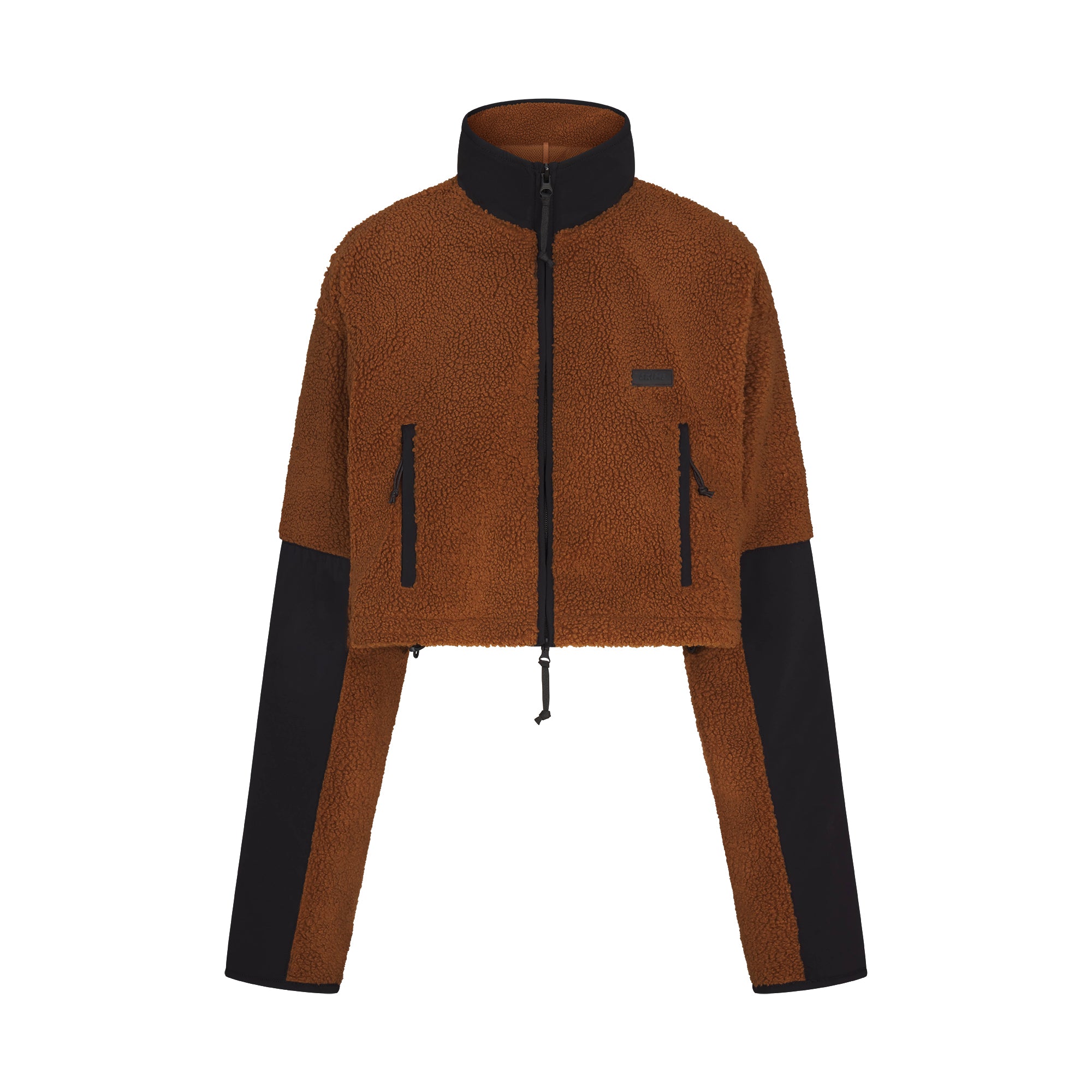 Layered in comfort. Your go-to essential for effortless warmth, this cropped half-zip is made in our signature soft faux shearling. Features a loose mock neck, woven panel detailing, and an adjustable bungee cord at the hem. Complete with zipper pockets and a SKIMS logo on the side chest. Fits true to size.
