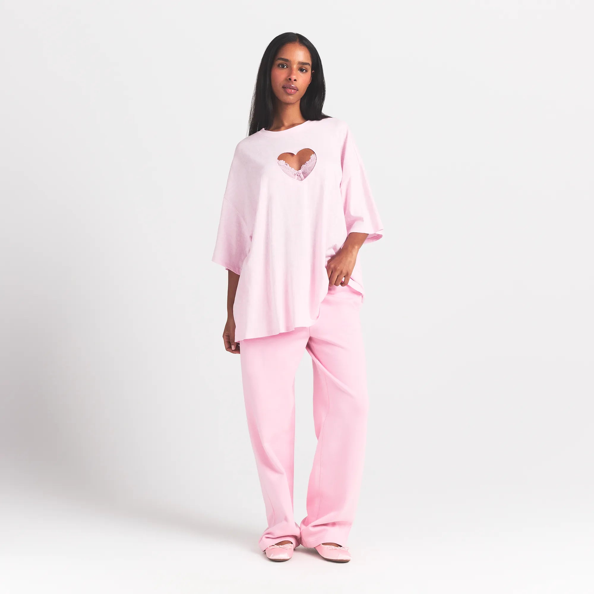 Fall in love with this soft oversized tee, made in our airy 100% cotton. Features a crew neckline, dropped shoulder silhouette, and center heart cutout. Complete with a SKIMS logo label detail at the center back neck.