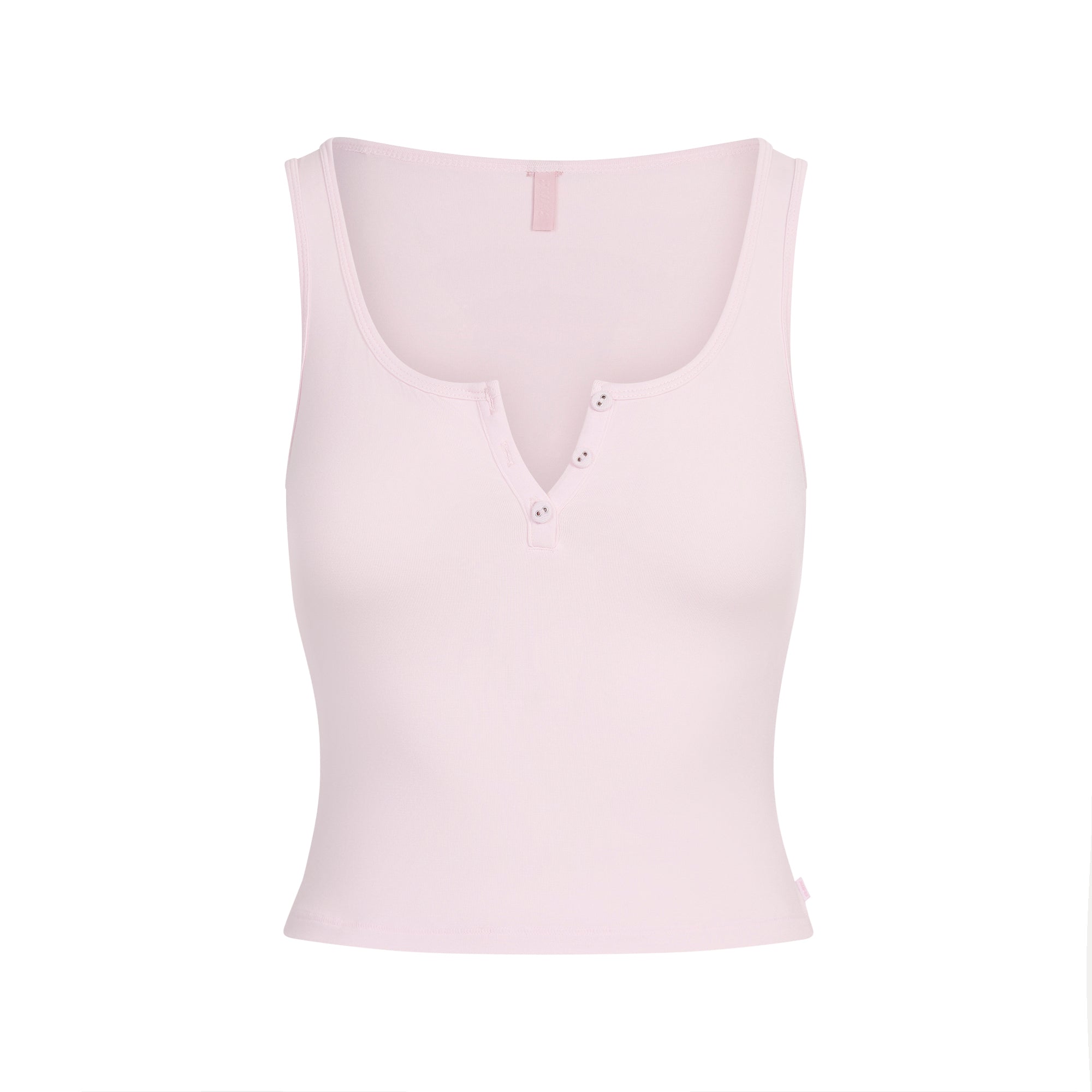 Sleep comes easy in this fitted tank. Made with an ultra-soft and stretchy modal fabric, this lightweight style gives you the comfort of your dreams. Features a scoop neck with henley buttons and hits below the natural waist. Fits true to size.