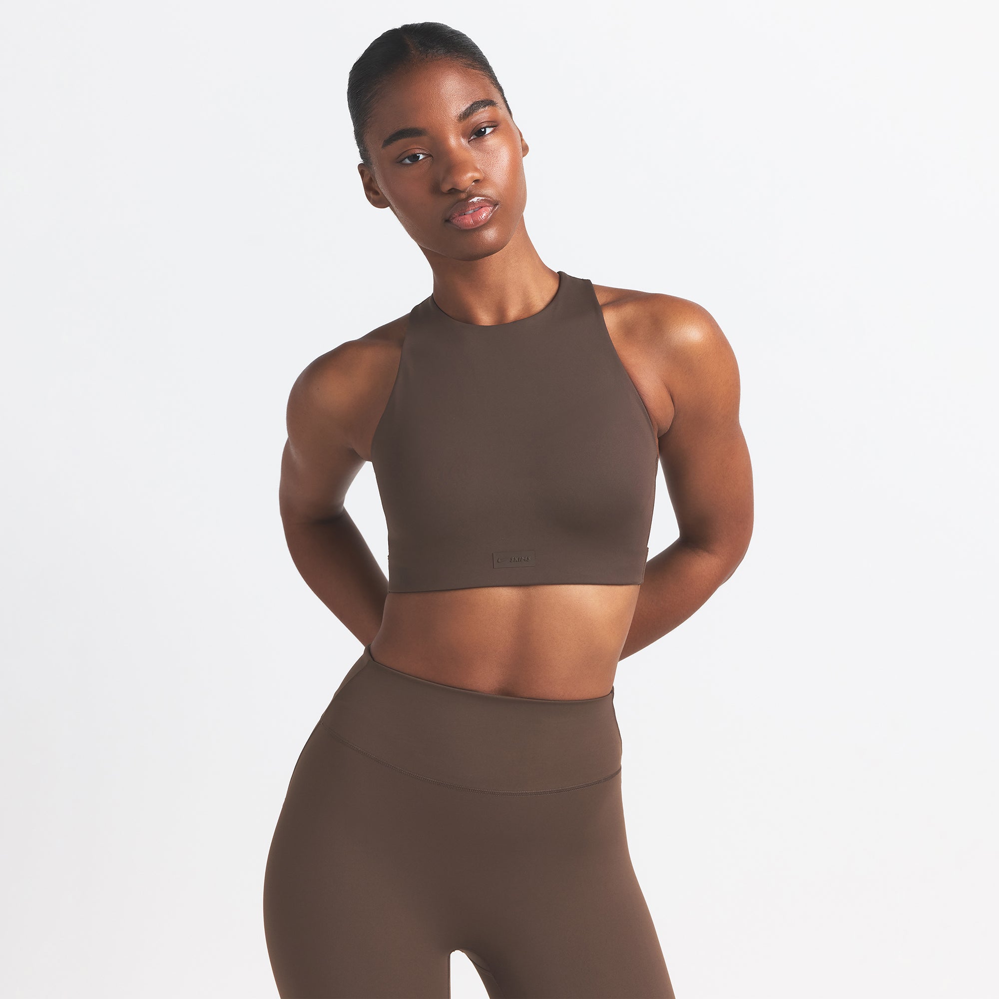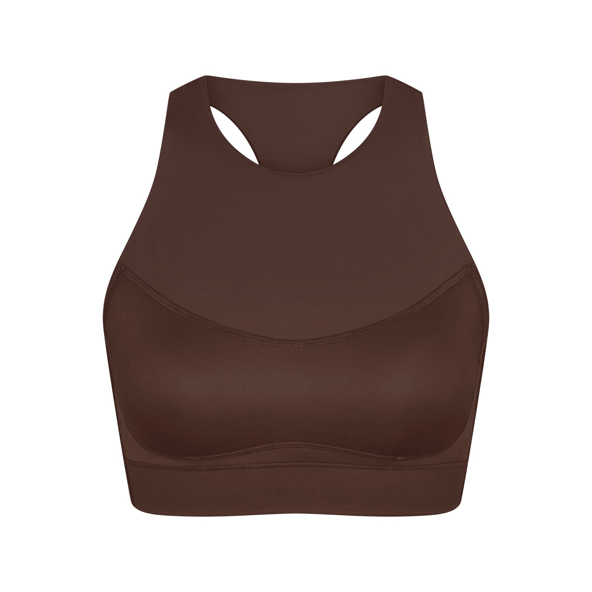 Offering high support, this bra has built-in pads that mold to you. Its racerback design, high neck, and internal bonded panels provide extra support and coverage while our sculpting Matte fabric and sweat-wicking Nike Dri-Fit technology make it a go-to for high-impact workouts and all-day wear.