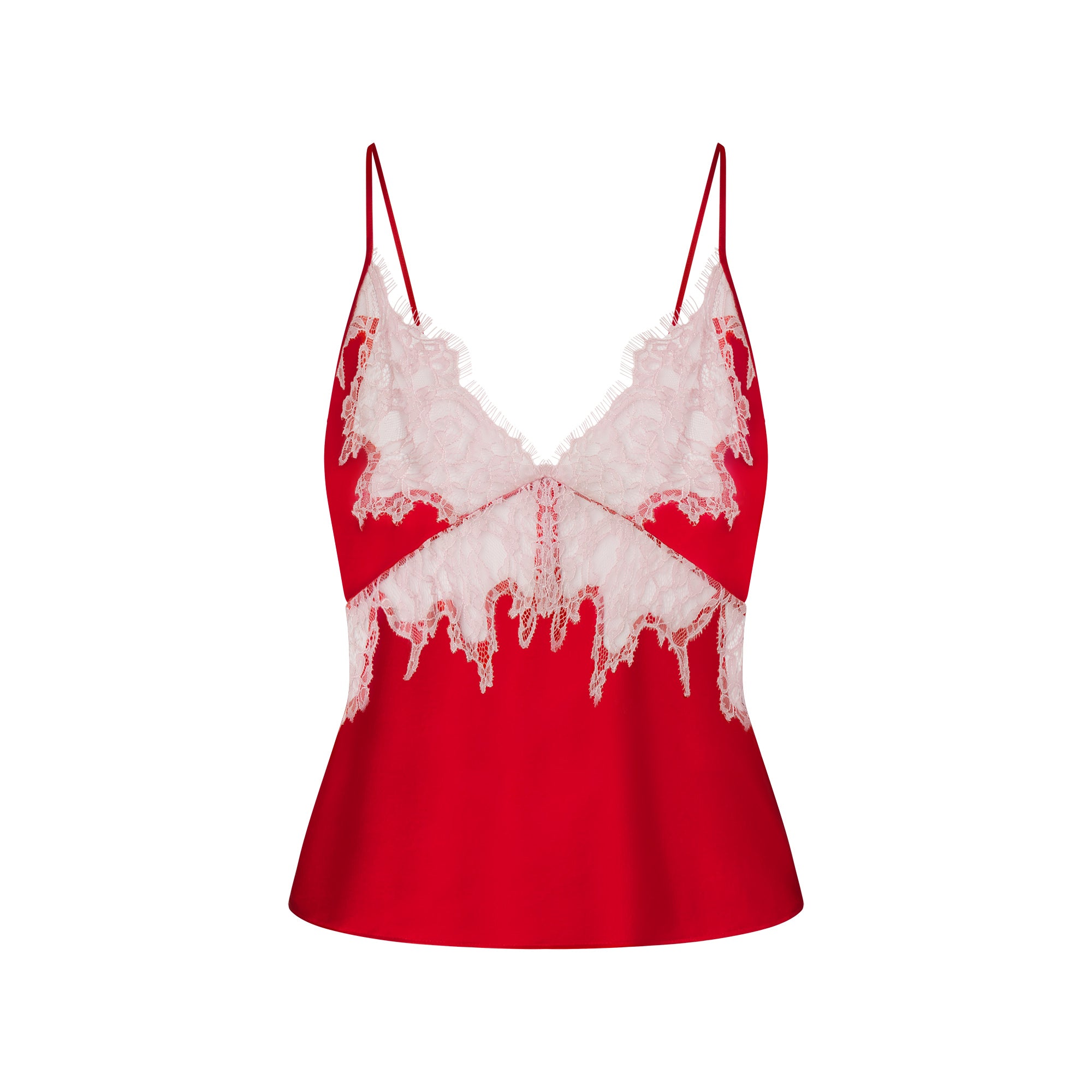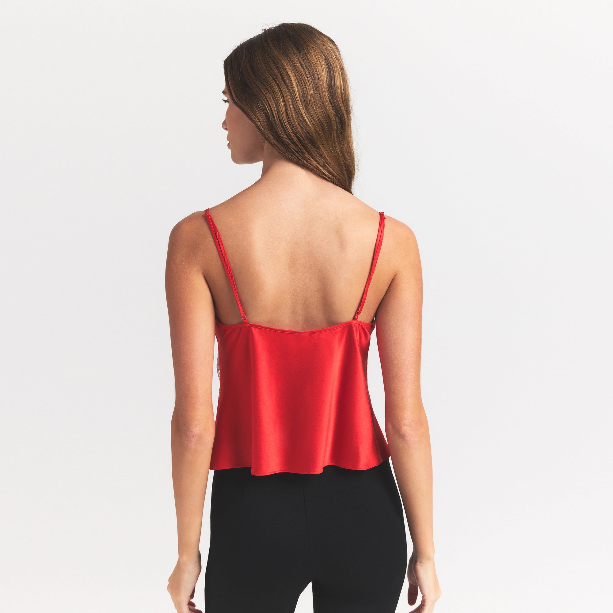 Crafted with contrasting lace details, this cami features a triangle neckline and adjustable straps. Wear it for luxurious lounging at home with the Silk Lace Straight-Leg Pant, or style it out alongside your favorite bottom.