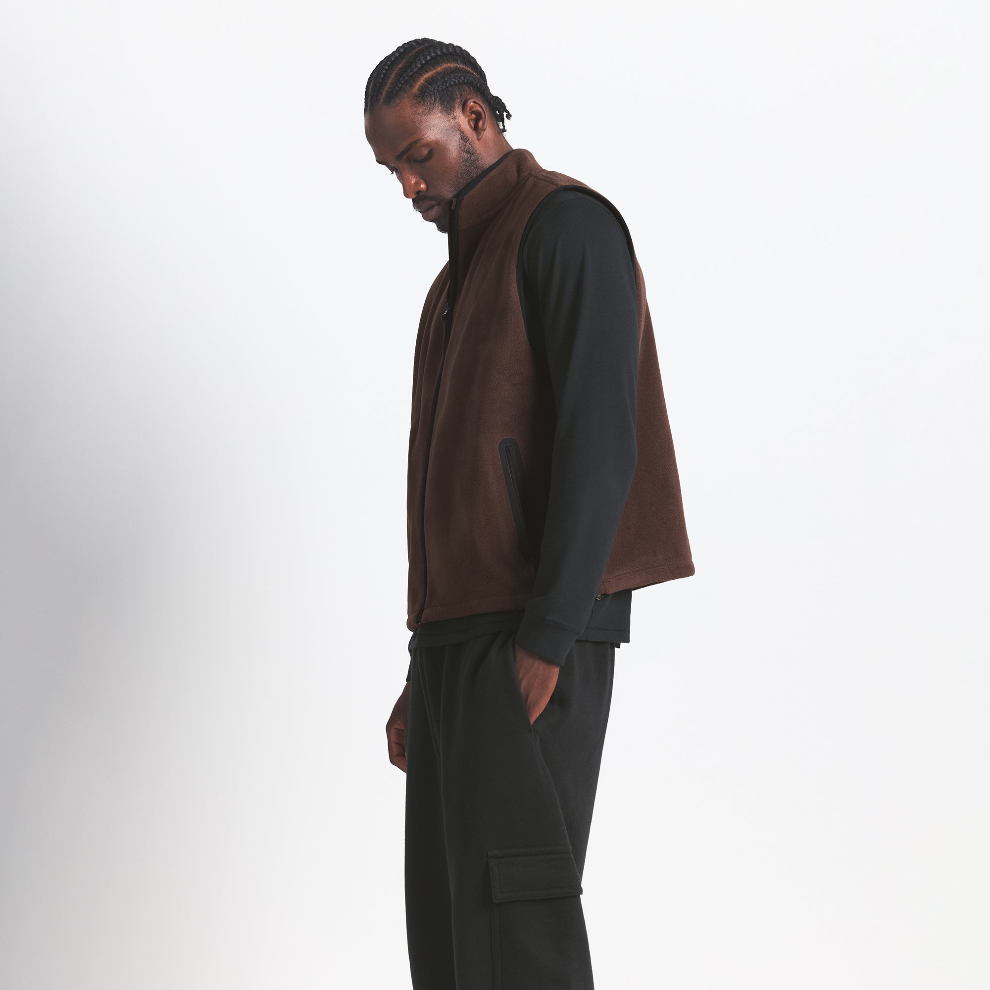 Core warmth meets everyday edge. Stay warm on the move with this Polartec mock neck zip-up vest. Features interior mesh lining with a patch pocket, zipper pockets, and an adjustable bungee cord at the hem. Finished with a logo label at the center back neck. Fits true to size.