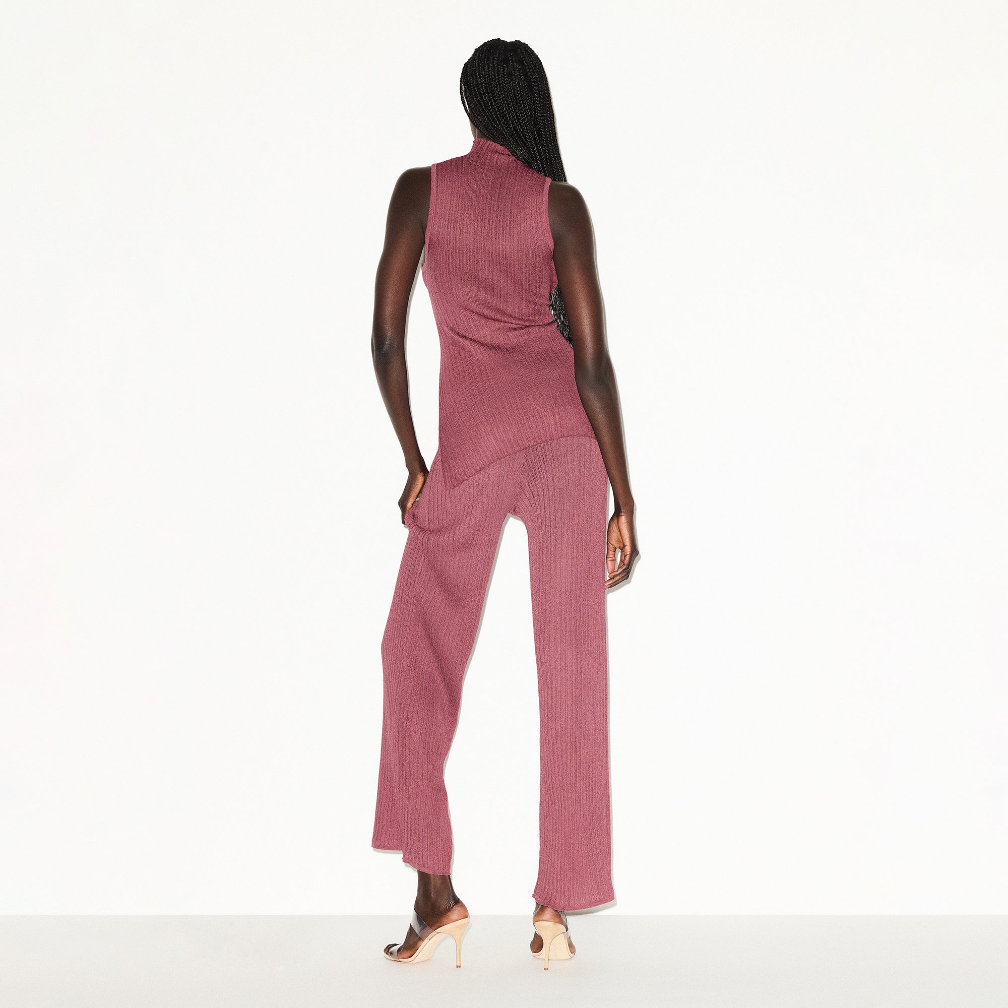 Step out and stand out in this sleeveless mock neck tunic, made in our new textured Sheer Knit fabric. This long length style features a body-hugging fit and side slits at the hem. Fits true to size.