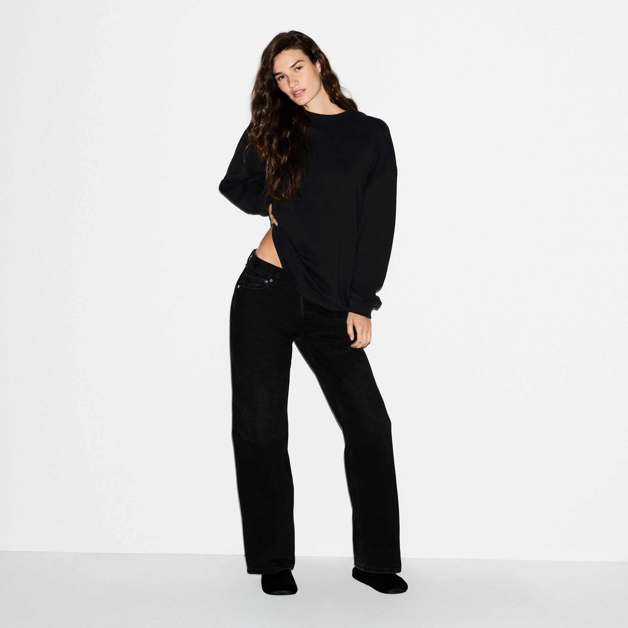 A cotton essential you’ll reach for again and again. Designed in our heavyweight 100% cotton fabric, this oversized long sleeve t-shirt features a drop shoulder silhouette. Complete with a ribbed crew neckline and cuffs. Fits true to size.