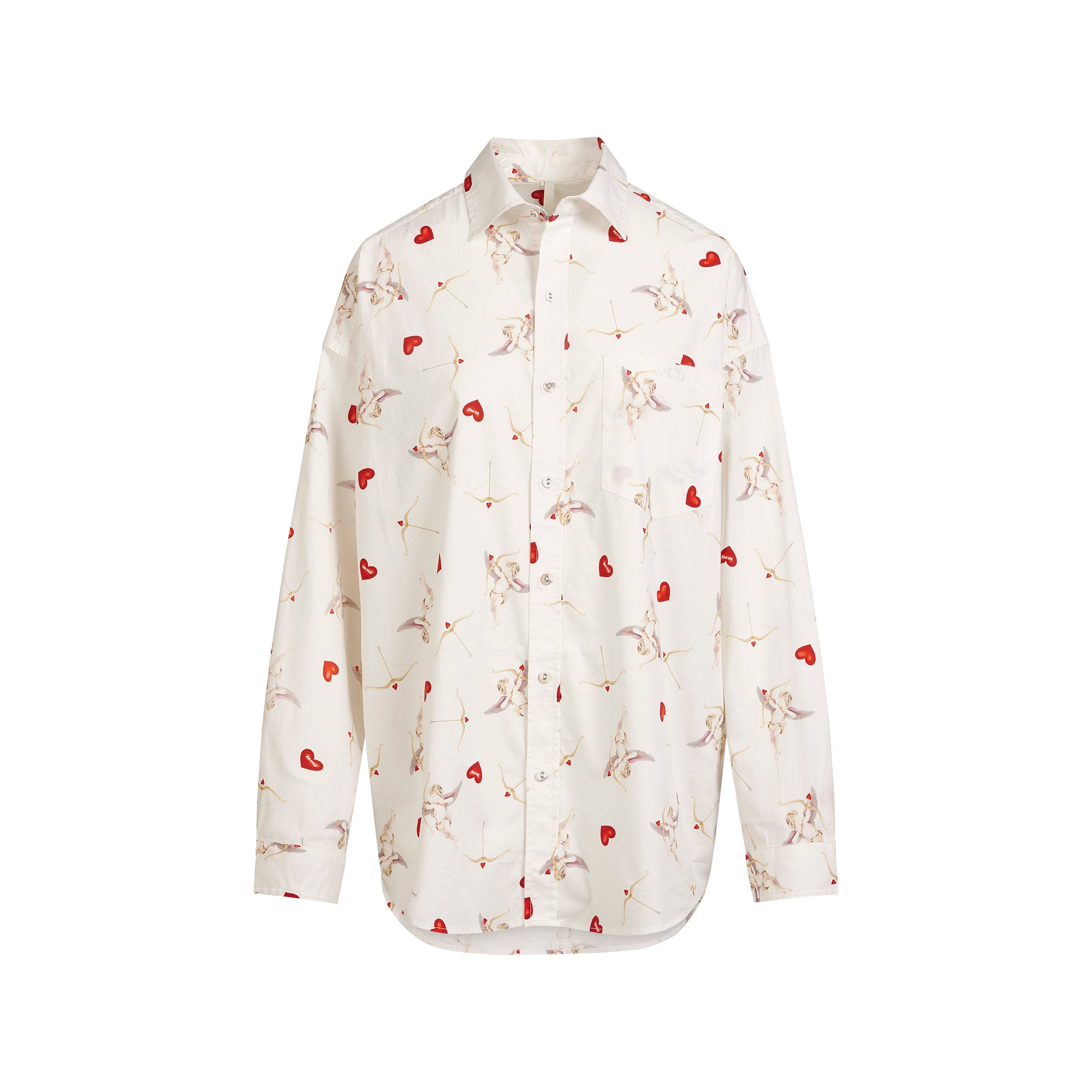 Chic style meets airy comfort in this oversized sleep set made with our signature Cotton Poplin. Includes a long sleeve button-up shirt with an embroidered chest pocket. The pant features a thin elastic waistband with picot trim, front buttons, and side pockets.