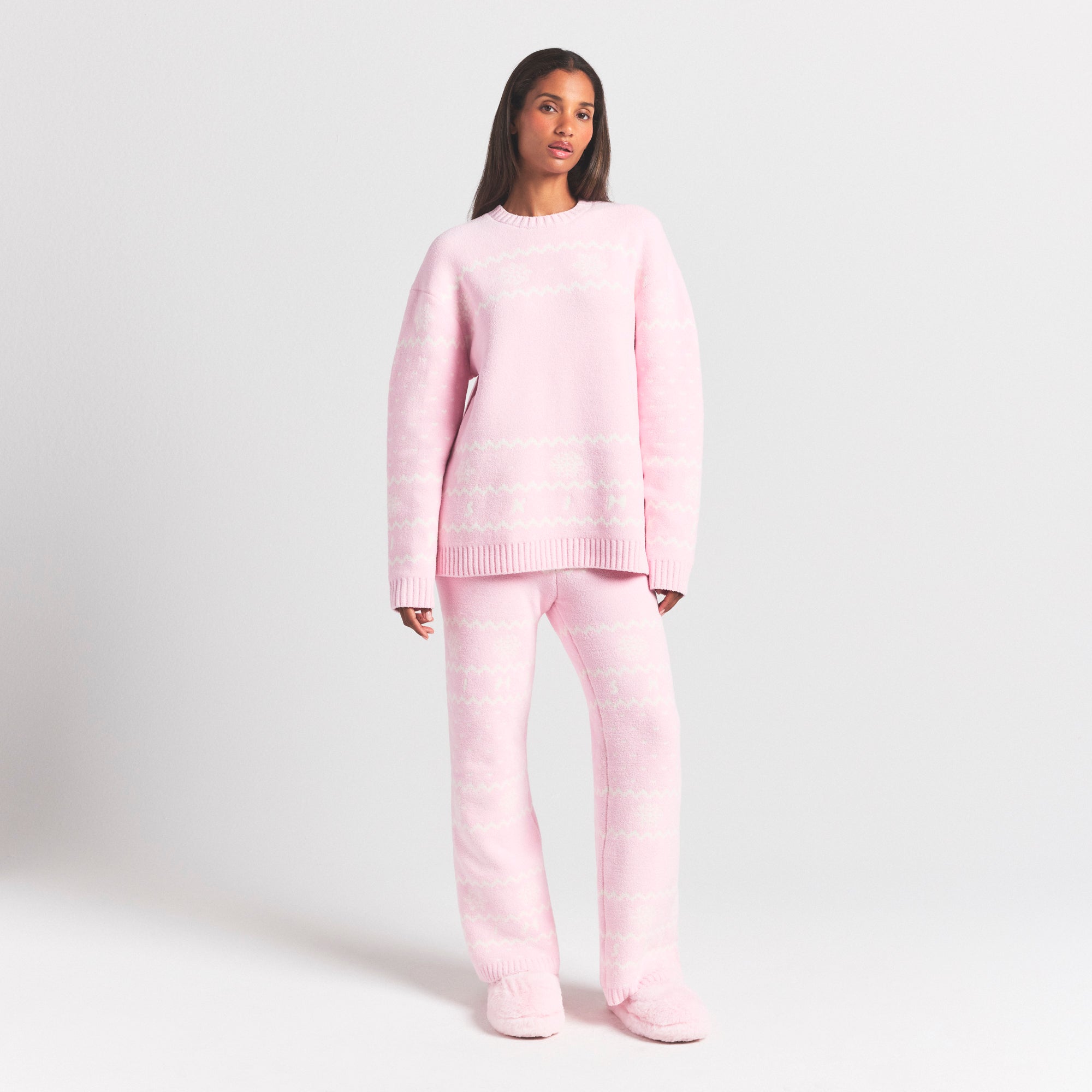 Iconically soft, iconically Cozy. Our bouclé knit, updated in a custom SKIMS fair isle print. With a relaxed, straight-leg fit and an adjustable stretch waist, lounging has never looked better.