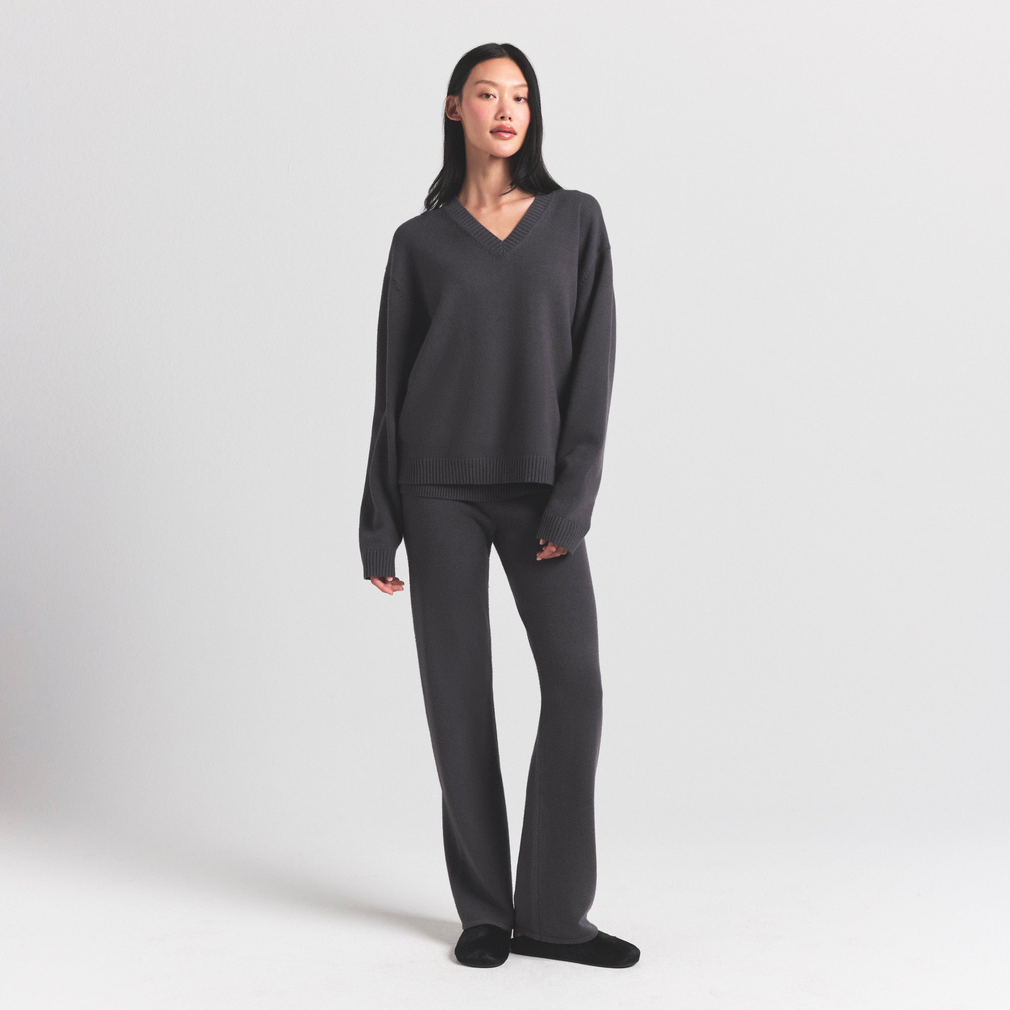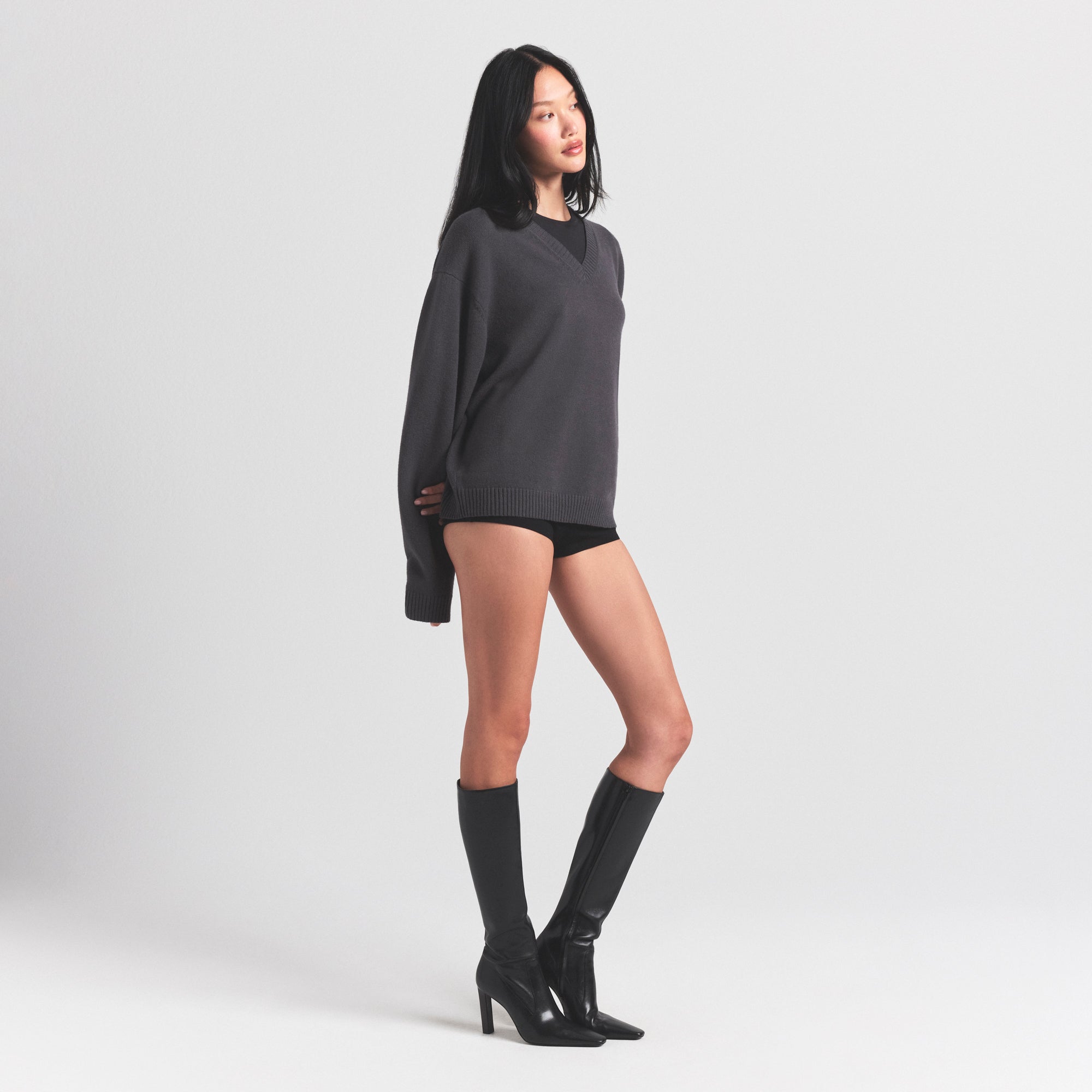 Meet your new go-to. An ultra-cozy pullover with an oversized cut, this V-neck is ready to style with anything in your wardrobe. Featuring dropped shoulders and a ribbed neck, cuffs, and hem.