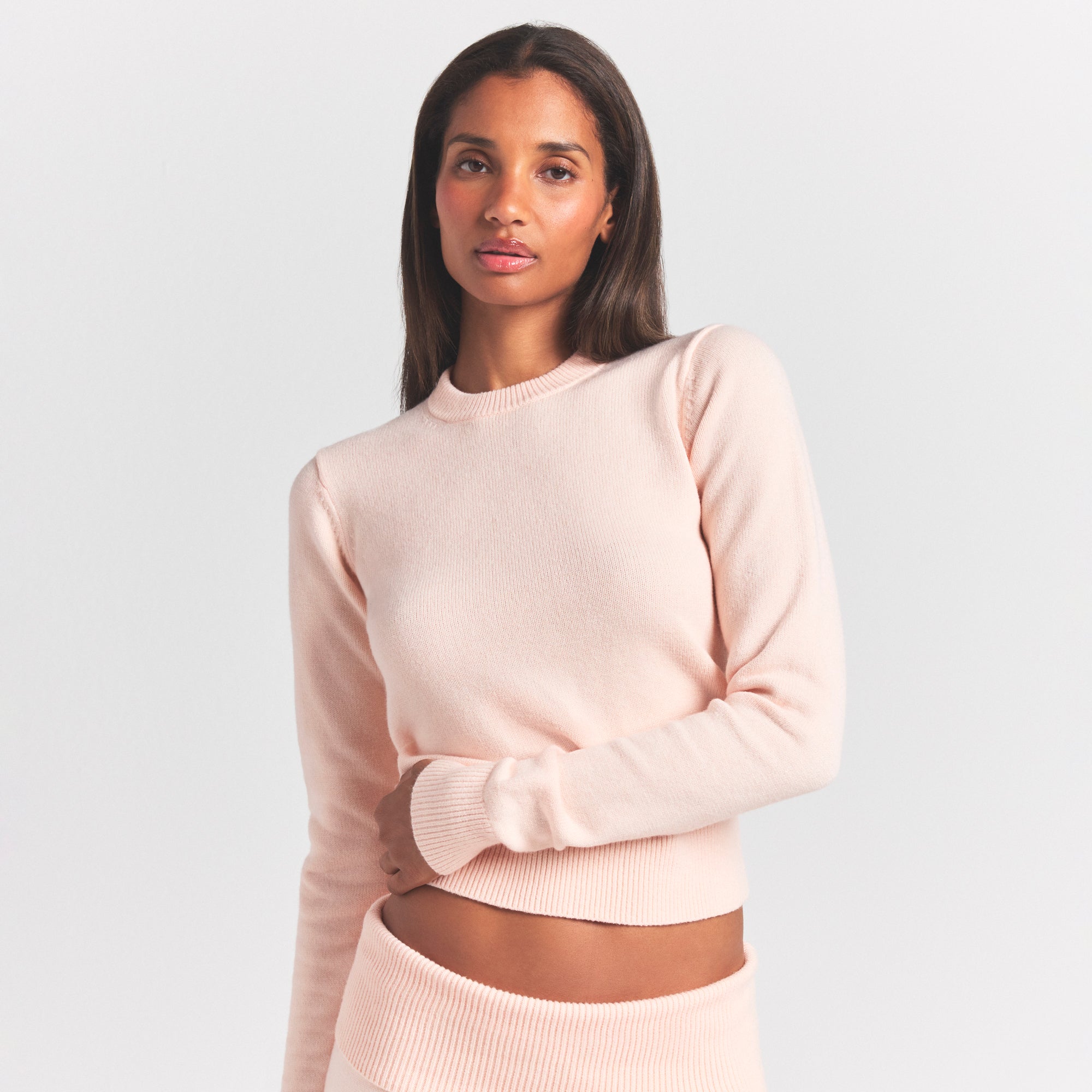 Lounge in it, layer it; there’s no wrong answer. This cozy knit crewneck is a winter styling essential. Features a slim fit and ribbed collar, cuffs, and hem.