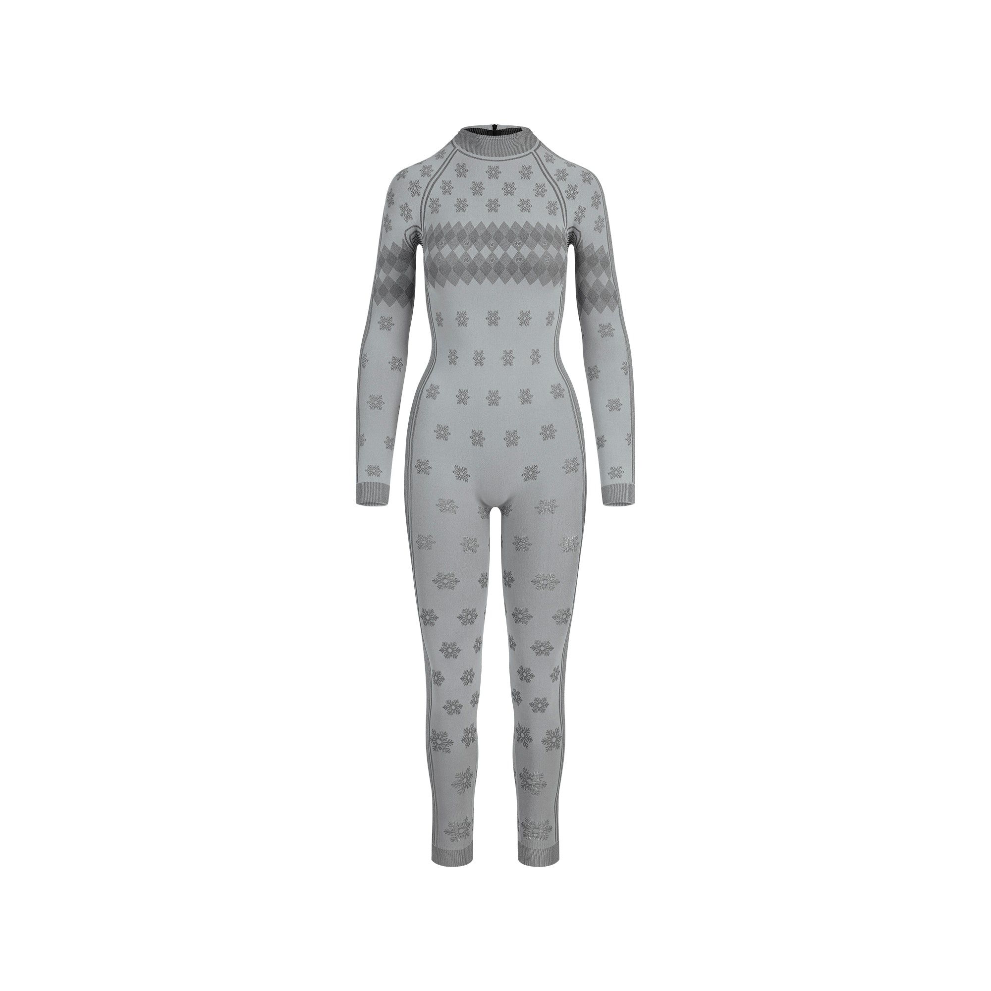 Sleek, seamless, and contouring from head to toe. With a timeless fair isle print and a body-hugging design, this turtleneck catsuit is guaranteed to heat things up on even the coldest of days. Featuring quick-drying and thermoregulating tech made to perform all winter long.