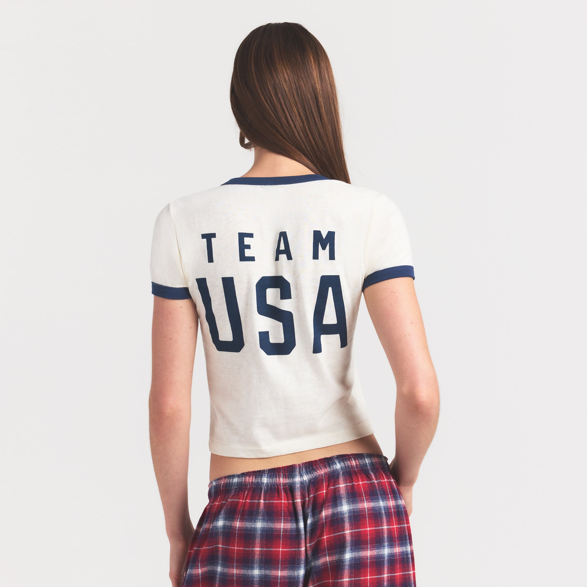 Unbeatable in comfort. Made with the softest 100% cotton, this shrunken t-shirt features a crew neckline and sporty contrast details. Complete with official graphics in support of the Team USA athletes participating in the Olympic Winter Games Milano Cortina 2026.