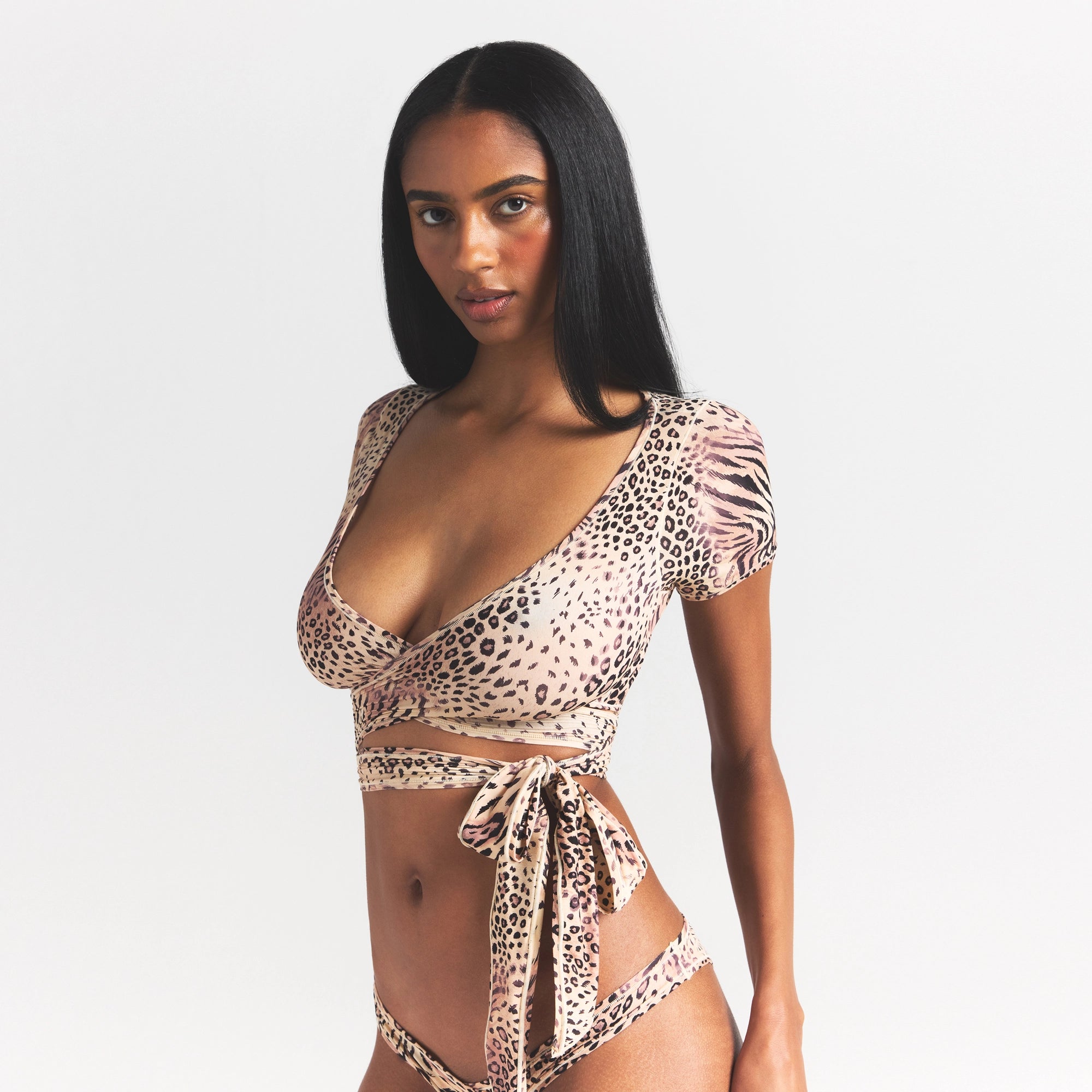 Sexy, ultra-flattering, and super cropped. This statement-making, plunge top is designed in our signature, buttery-soft fabric and features a wrap front design with ties. Complete with short cap sleeves.